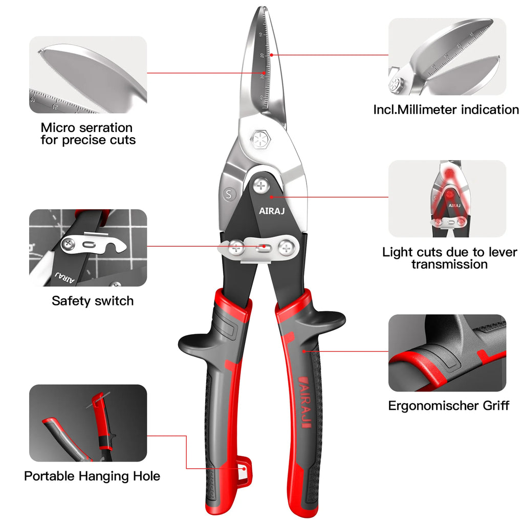 AIRAJ Iron Sheet Scissors, Industrial Grade Aviation Aluminum Buckle Plate, Stainless Steel Light Large Scissors