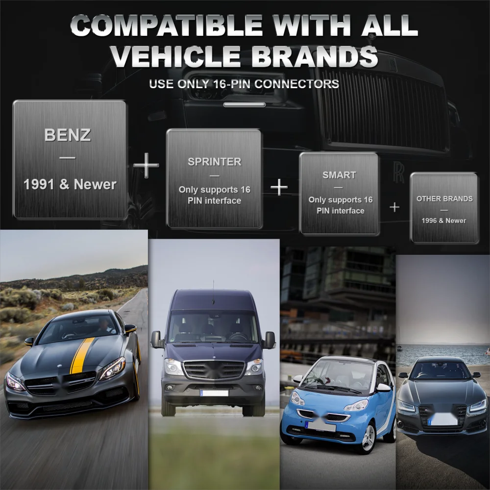 Support all For Mercedes Benz/Sprinter/Smart with OBD2 interface 16PIN from 2000 to 2024.
