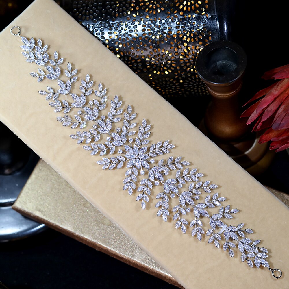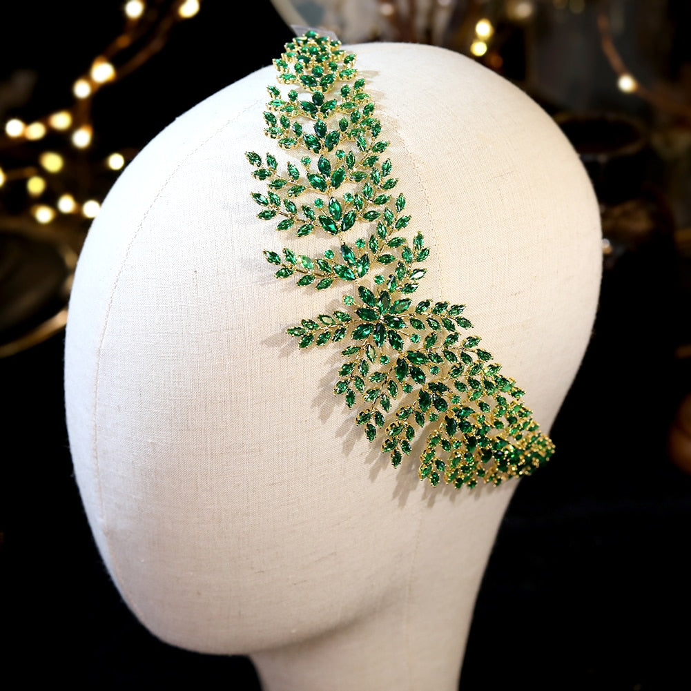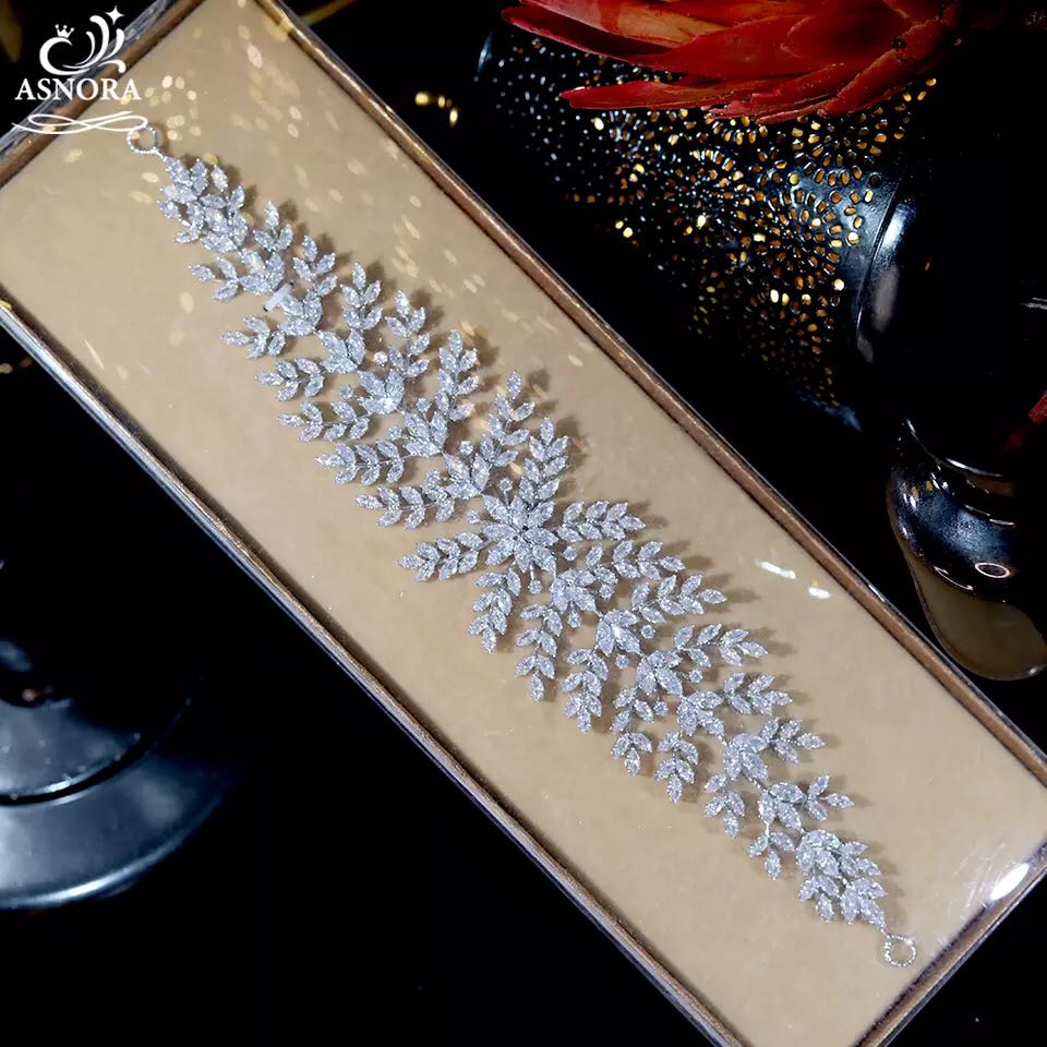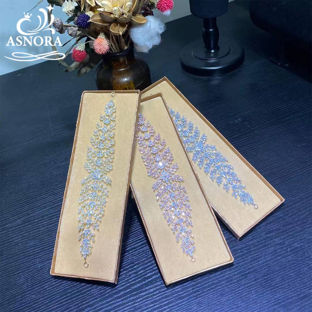 ASNORA Wedding 3A Cubic Zirconia Soft Headband Green Hair Accessories High Quality CZ Bridal Tiara Crown Jewelry For Women