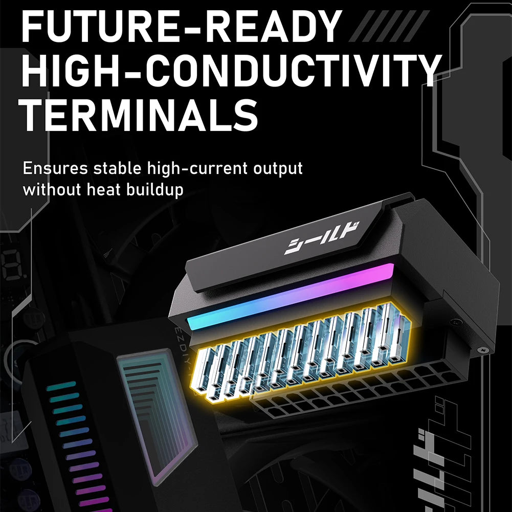 Feature: 1. Striking Shield-Inspired Design: The ATX 24 pin to 180 degree power plug adapter features a seamless mirror finish inspired by sturdy shields, enhancing your system's visual appeal while blending harmoniously with other components for an understated yet refined look. 2. Efficient Cable Management & Stress Relief: With a flexible 180-degree configuration, the ATX 24-pin 180 degree power connector adapter ensures tidy and efficient cable management, reducing clutter during installation and minimizing connector stress for stable system operation. 3. High Conductivity Terminals, Universal Compatibility: Featuring alloy copper terminals, the female to male power adapter ensures stable high-current output with minimal heat generation. It complies with ATX 3.1 standards and is compatible with ATX, mATX, and ITX motherboards. 4. Captivating ARGB Lighting Effects: The ATX 24 pin 180 degree adapter boasts an infinity mirror and shield panel with RGB lighting, adding soft ambient light to your build with a dazzling ARGB rainbow scheme, enhancing overall aesthetics and user experience. 5. Classic Color Options for Perfect Match: Available in classic black and white, the computer motherboard 24 pin female to male connector caters to diverse aesthetic preferences. These colors ensure visual cohesion, making your setup both attractive and powerful. Specification: Origin: Mainland China Type: Modular Adapters Product size: 60.00x43.00x38.00mm Product size: 2.36x1.69x1.5inch