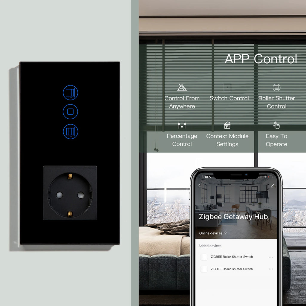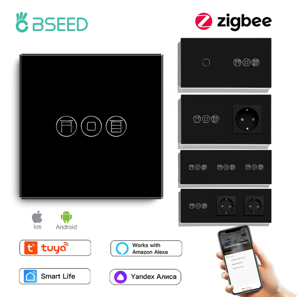 BSEED Zigbee Roller Shutter Switch Smart Light Wall Switches Electric Blinds Switch With EU Socket Support Tuya Smart Life Alexa