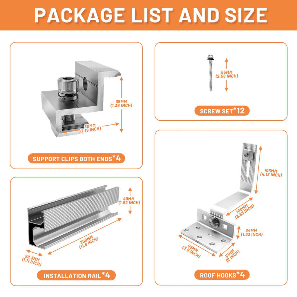 CP-SETUNO Solar Panel Mounting Set, Photovoltaic Mounting Rail for 1/2/4 Solar Panel, 300 mm Aluminum Mounting Rail, for 30/35 m