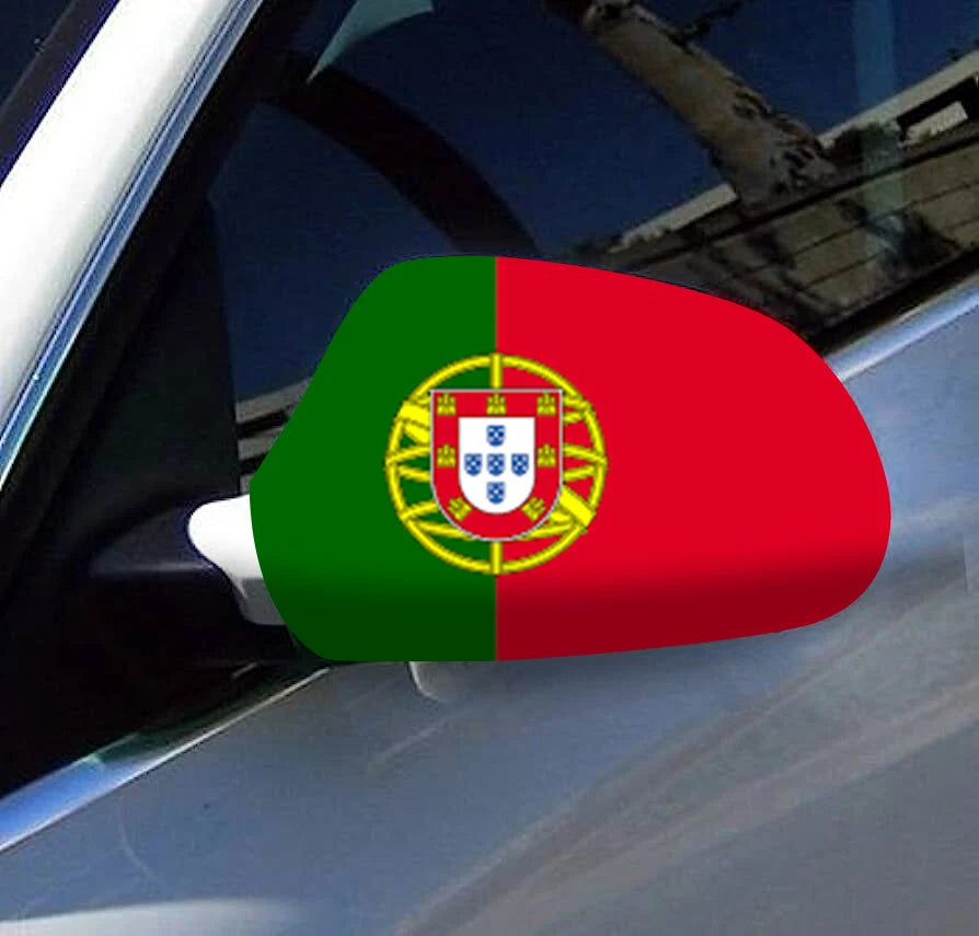 Directly Delivery 2 Pcs Free Size Four-way stretch fabric Portugal Portuguese Flags Car Mirror Cover