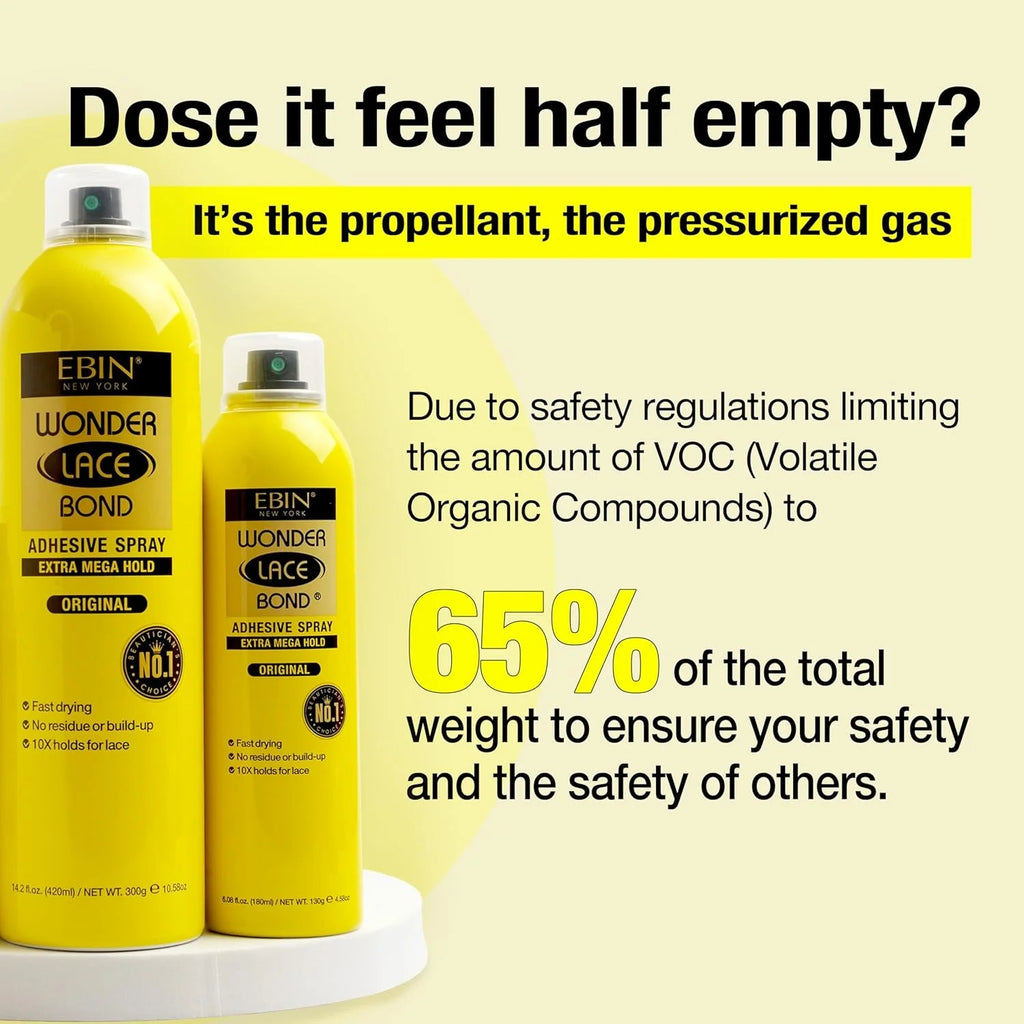 Ebin New York Wonder Lace Bond Adhesive Melting Spray Extra Mega Hold Daily Use - Long lasting Hold, Ideal for Lace Wigs