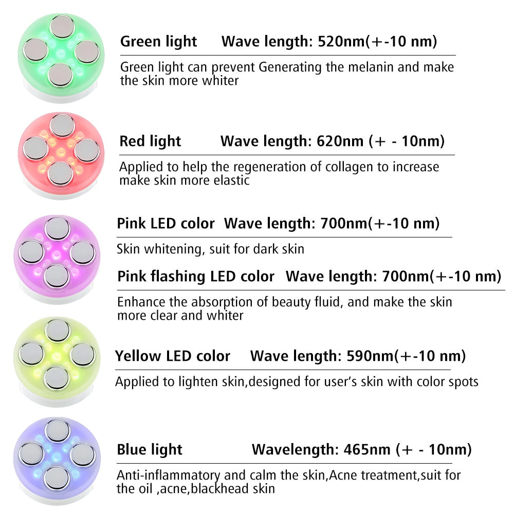 3. Fünf Lichtfarben (Rot/Grün/Orange/Blau/Lila) sind für verschiedene Hauttypen geeignet und erfüllen die Bedürfnisse verschiedener Personengruppen.