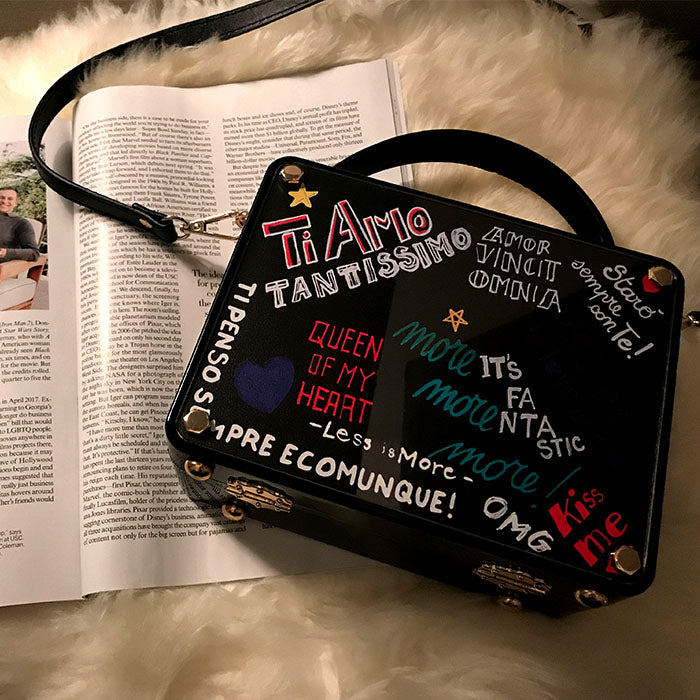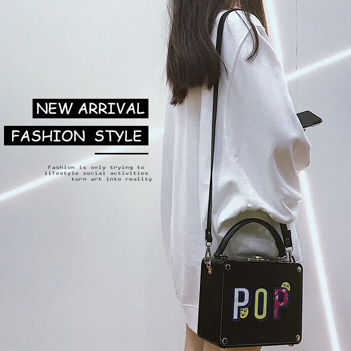 Mode Acryl Box Design Cartoon Frauen Party Kupplung Umhängetasche Brief Bild Geldbörsen und Handtaschen Weibliche Designer Tasche