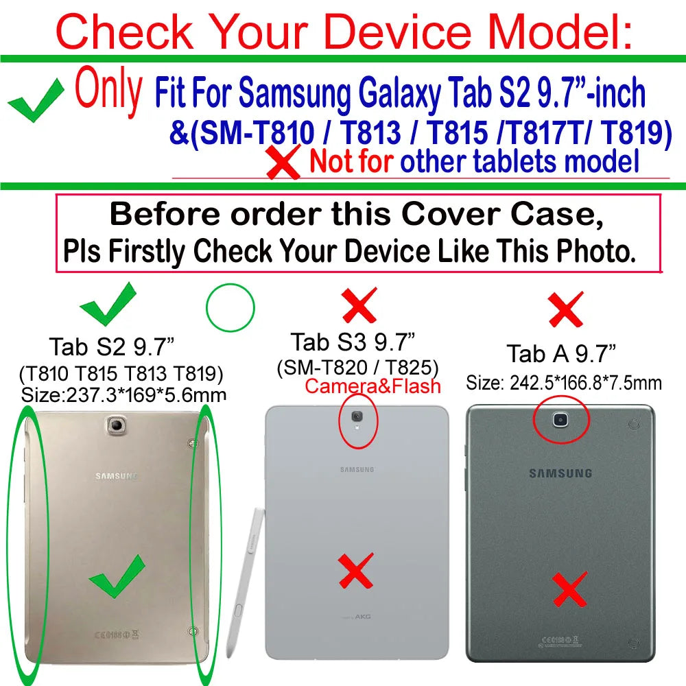 For Samsung Tablet Tab S2 9.7-inch SM-T810 T815 T813 T817T T819 Case Protective Stand Cover With Auto Sleep/Wake Feature Cases