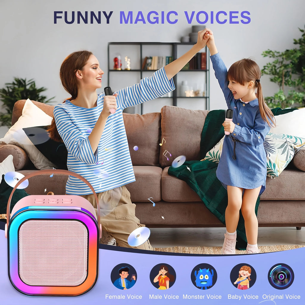• Dual Microphone Karaoke Machine :Enjoy singing with friends and family with two wireless microphones included.