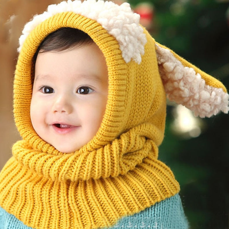 Korean Baby Strickmützen Hund Ohren Winter Earflap Jungen Mädchen Schal Set niedlich warm Kleinkind Hut Kinder Kinder winddichte Mütze 0-4 Jahre