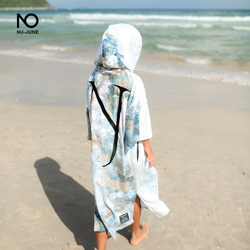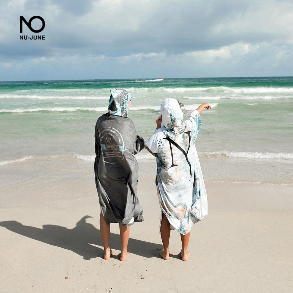 Nu-June Mikrofaser-Neoprenanzug, schnell trocknend, Umkleide-Poncho, Handtuch mit Kapuze zum Schwimmen, Strandtuch, leichter Strand-Surf-Poncho