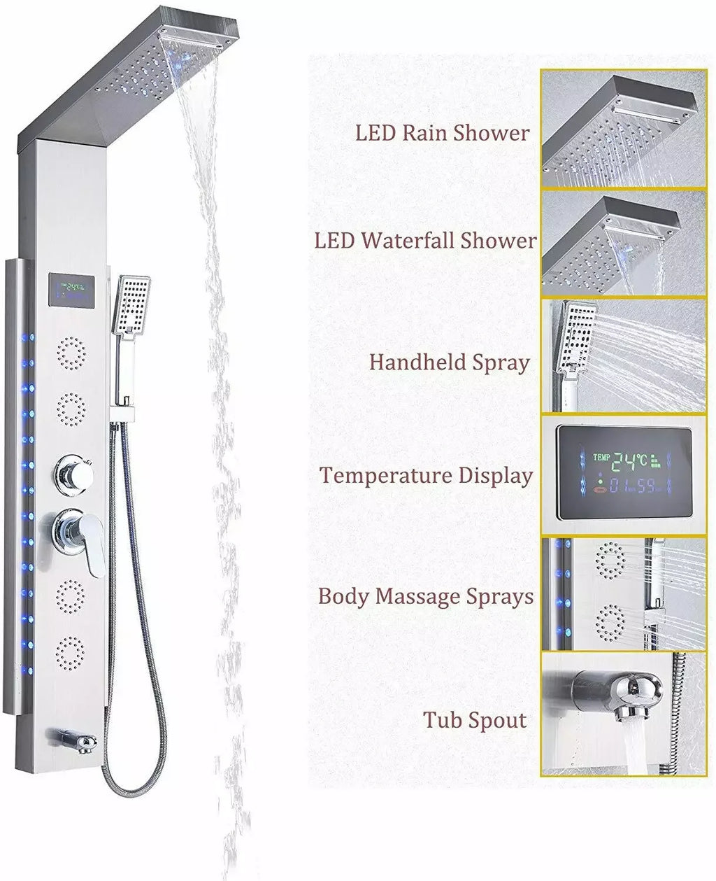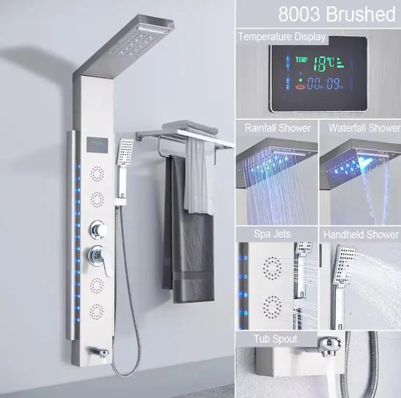 LED Shower Panel Black Shower Column Tower Digital Screen TEMP Shower Mixer Faucet