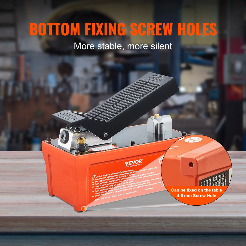 Instant Activation for Effortless Power: Introducing the hassle-free foot-operated air/hydraulic pump, complete with hydraulic oil right out of the box. Say goodbye to tedious setup – simply step on the pedal for effortless pressure application and let it rebound for release. This user-centric design maximizes labor-saving convenience.
