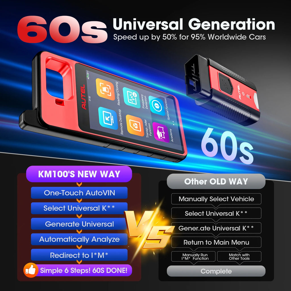- 60-Second Key Generation (Autel Universal Only)