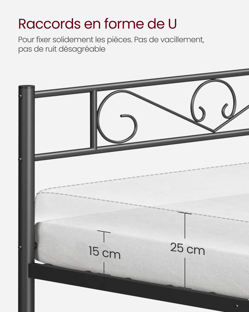 Facile à assembler Avec des instructions faciles à suivre et des pièces numérotées incluses,vous terminerez l’installation de ce cadre de lit en un rien de temps ! |