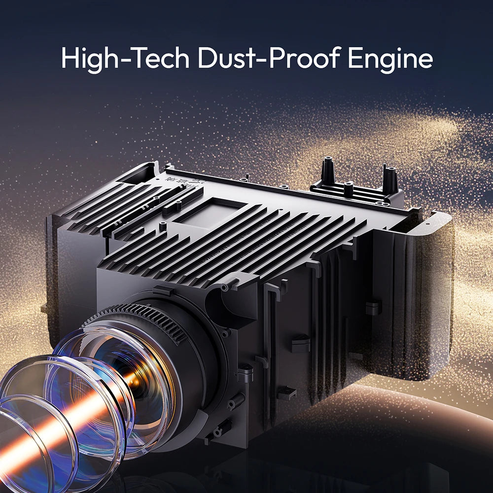 Closed optical design effectively prevents dust from entering the core optical components, significantly extending the life of the projector and keeping the image quality long-lasting and clear, it reduces the dust accumulation problem by more than 90% and avoids brightness degradation and color distortion due to contamination, which is especially suitable for pet homes or dusty environments, and at the same time, reduces the cost of maintenance, so you can enjoy the stability of high-quality images as the same.