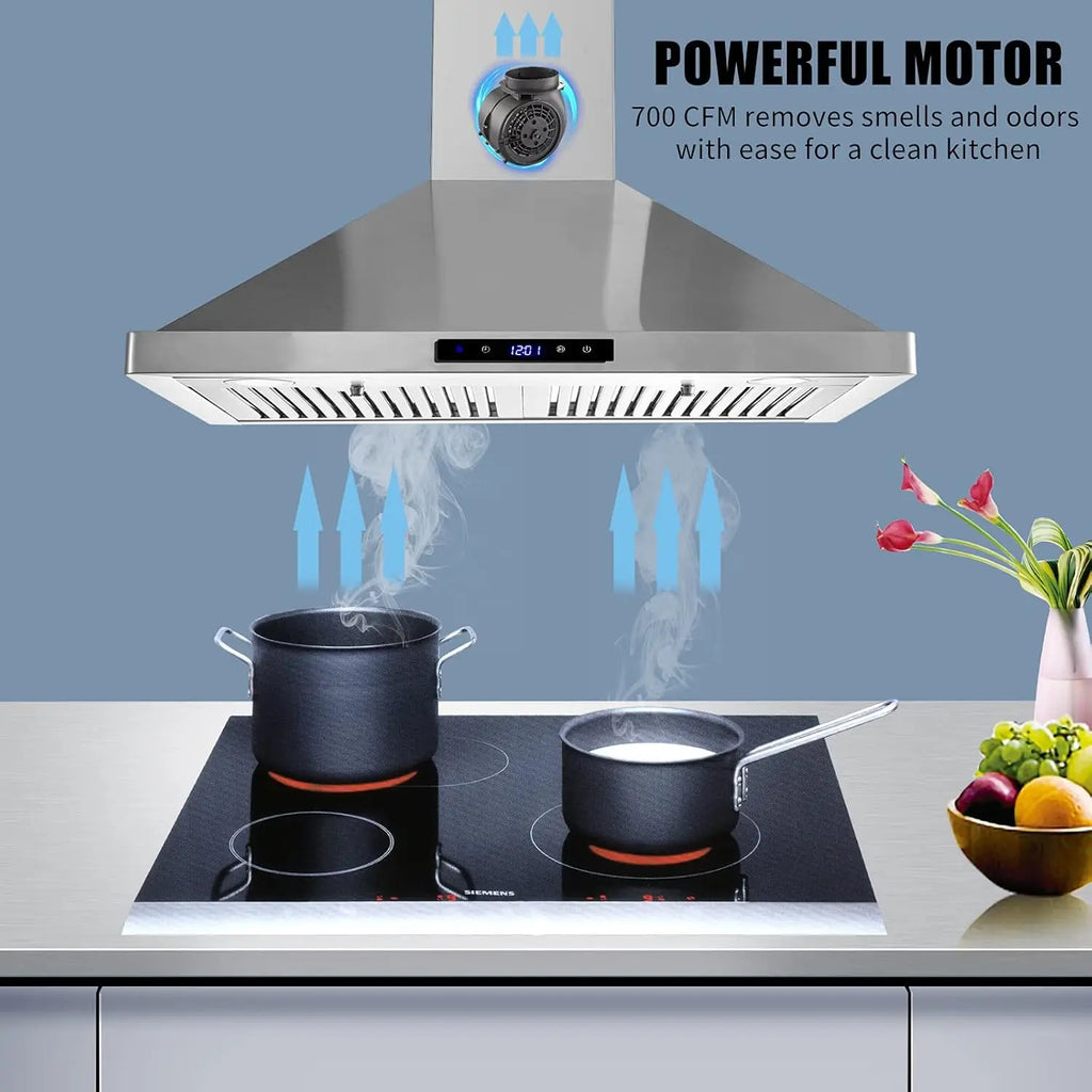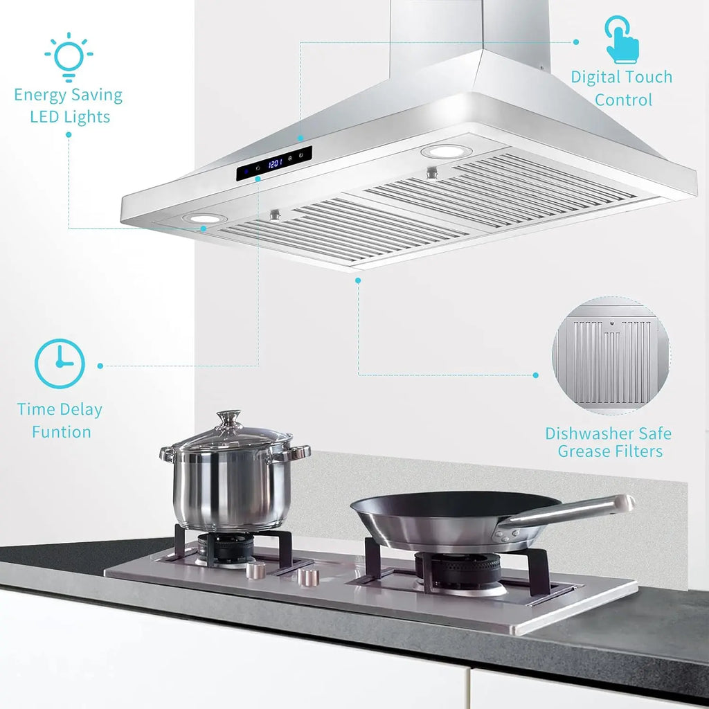 With the 700 CFM strong suction, this 30 inch range hood can prevent the cooking fumes from spreading.