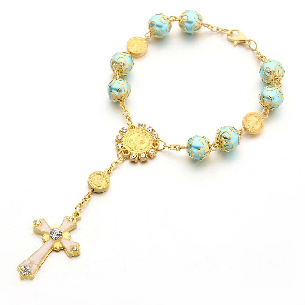 10pcs Top Quality Catholic Rosary Necklace Glass Pearl Beads Decade Rosary Pendent For Women Drilled Cross