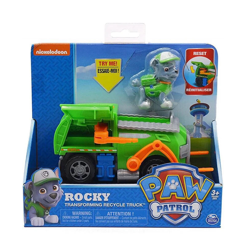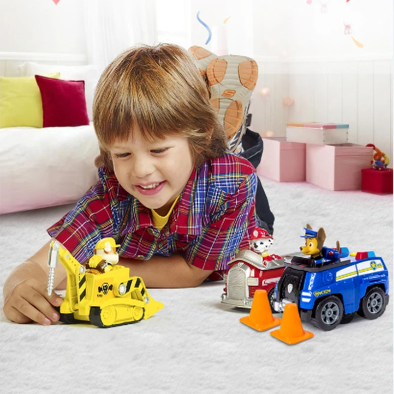 Original Paw Patrol Rescue Dog Puppy Set Spielzeugauto Patrulla Canina Spielzeug Actionfigur Modell Chase Skye Trümmerauto für Kinder Geschenk