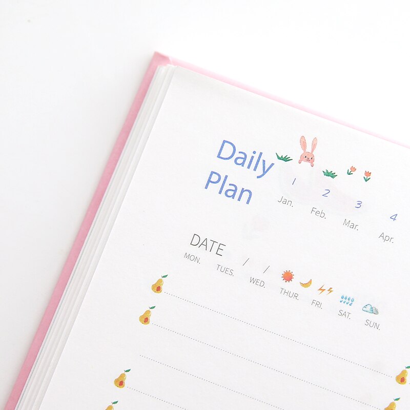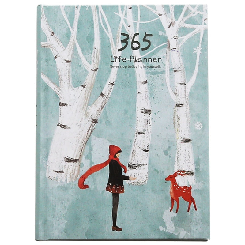 JIANWU Niedlicher Cartoon Der 365-Tage-Plan Buch Farbe Innenseite Planer Hardcover Notizbuch Geschenkbuch Scrapbooking Schulbedarf