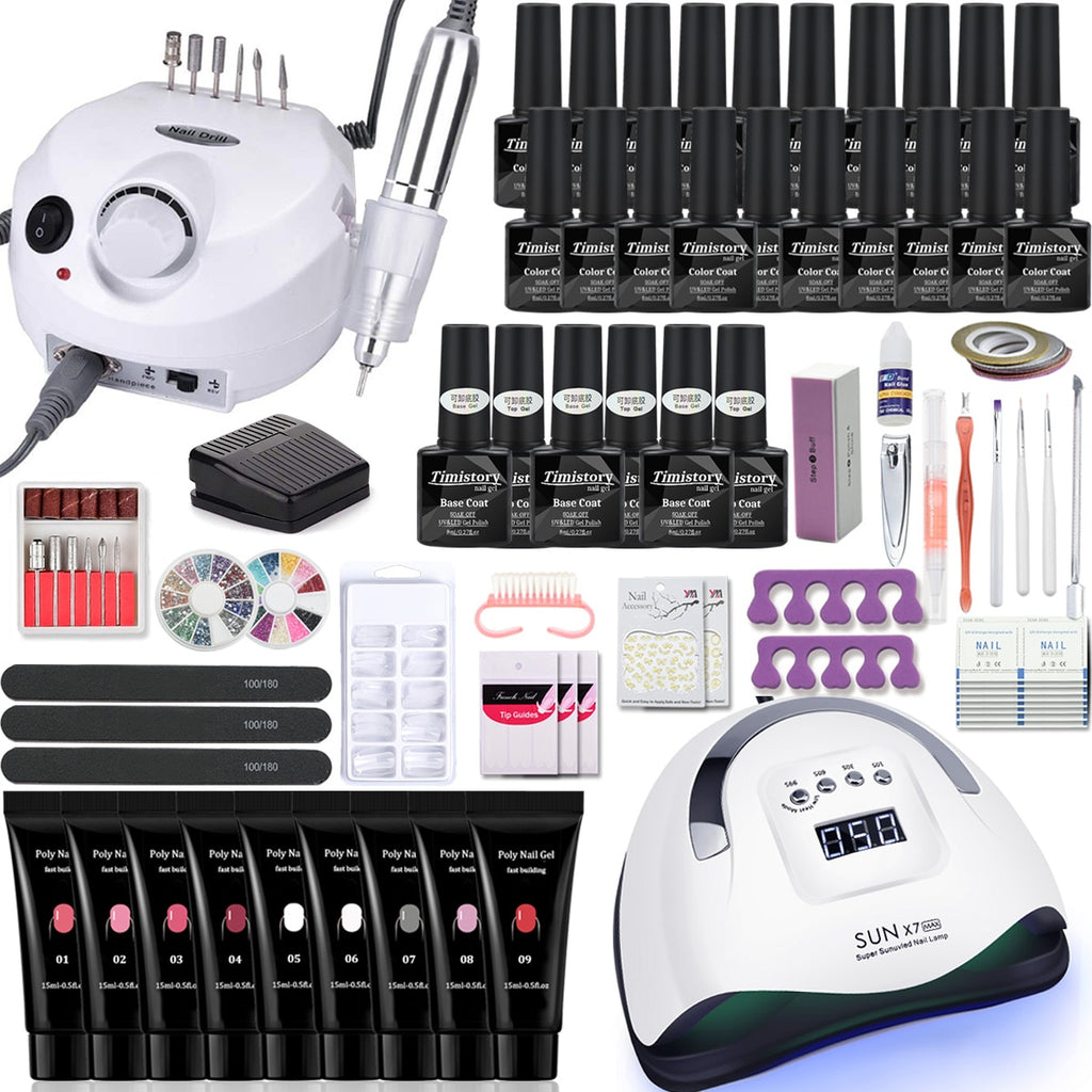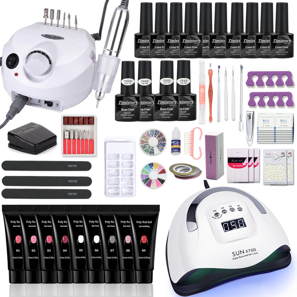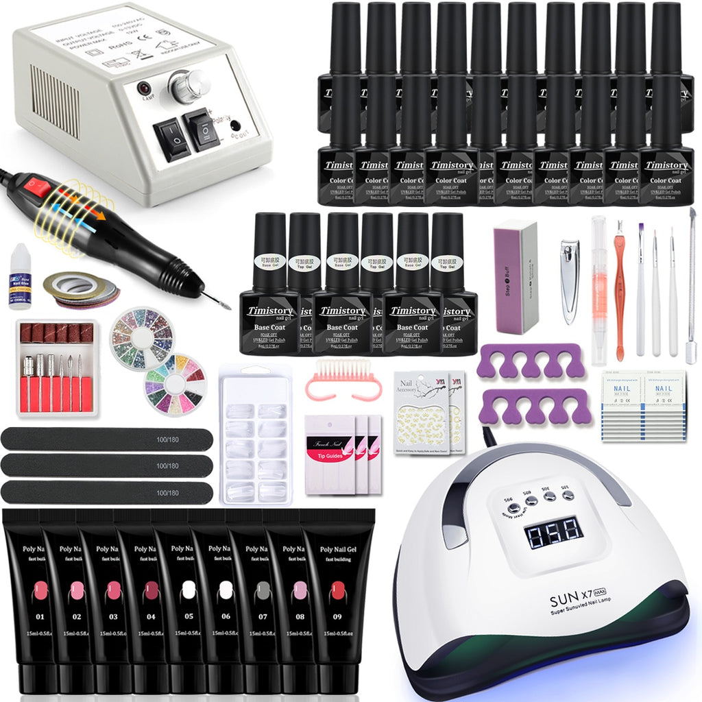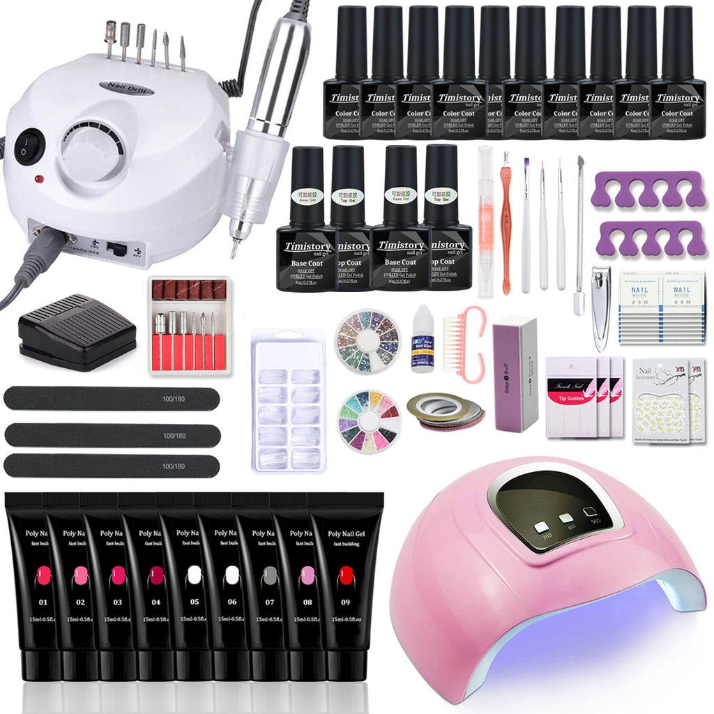 Nagel-Set Maniküre-Set mit 114 W / 120 W / 54 W LED-Nagellampe 35000 U / min Nagelbohrmaschine 20/10 Farbe Poly Extension Nail Gel Set