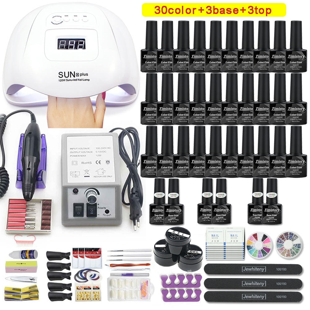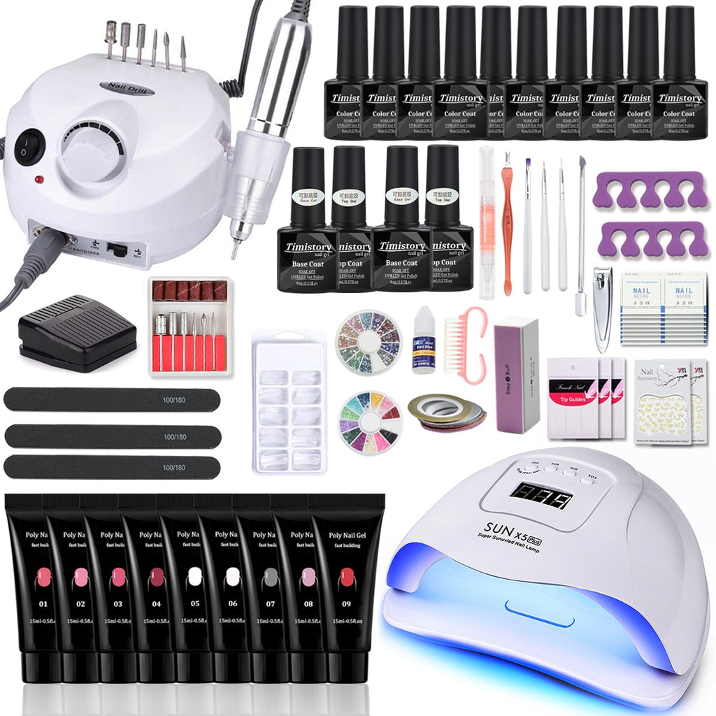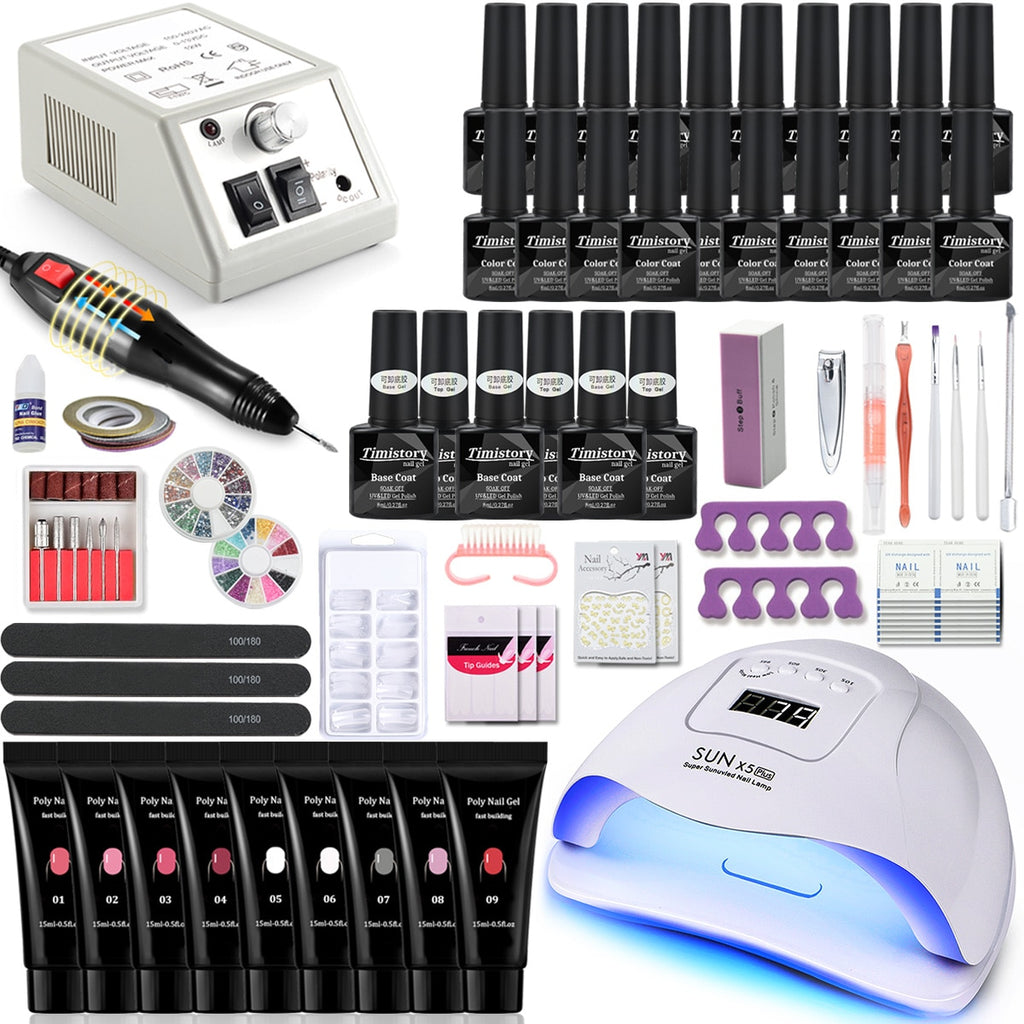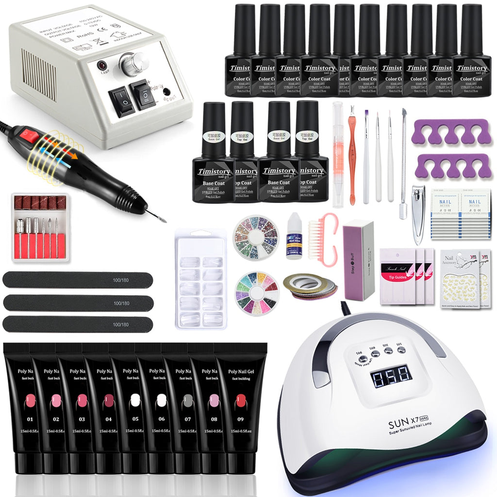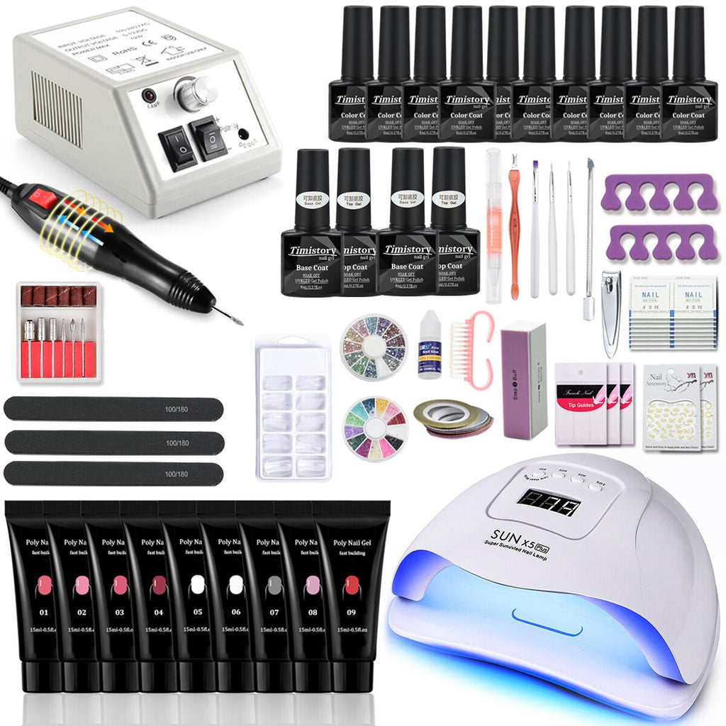 Nagel-Set Maniküre-Set mit 114 W / 120 W / 54 W LED-Nagellampe 35000 U / min Nagelbohrmaschine 20/10 Farbe Poly Extension Nail Gel Set