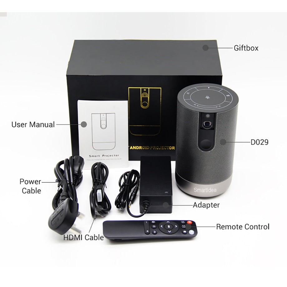 Smartldea D29 Tragbarer 3D-DLP-Projektor natives Full HD 1920 1080p-Handheld-Android-WLAN-4K-Beamer Build Battery Home Projector