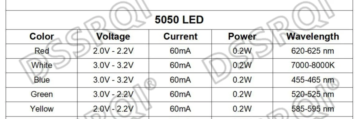 5050 5 Colors LED Kit Red Green Blue White Yellow Each 20pcs