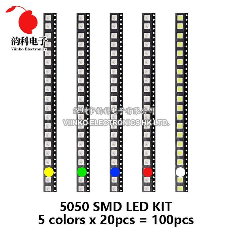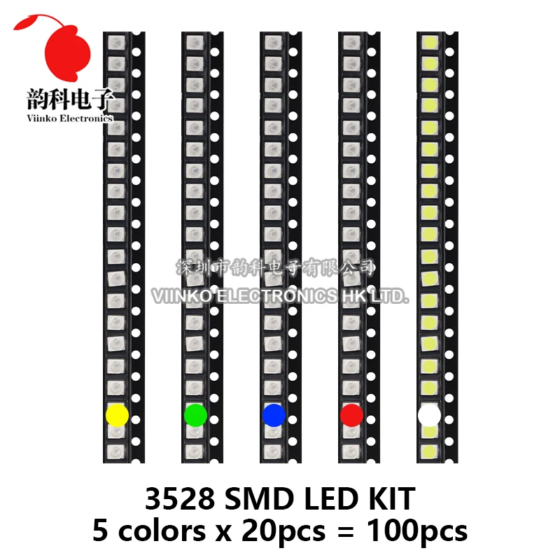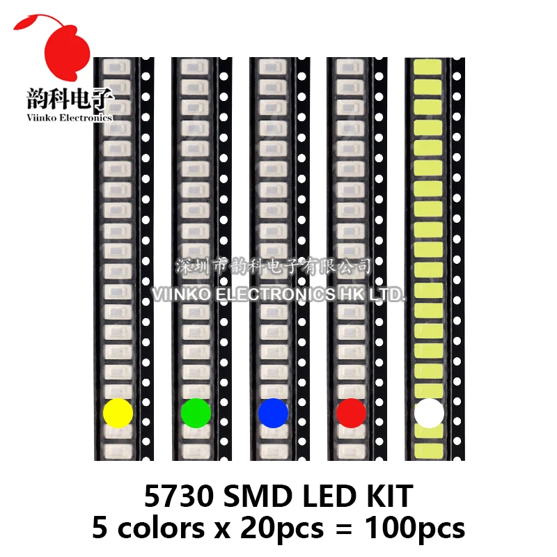 100pcs 5colors Each 20pcs 5730 5050 3528 1210 1206 0805 0603 0402 SMD LED Diode Kit Red Green Blue White Yellow