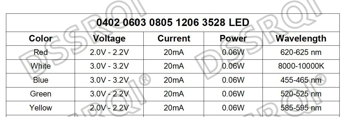 0603 5 Colors LED Kit Red Green Blue White Yellow Each 20pcs