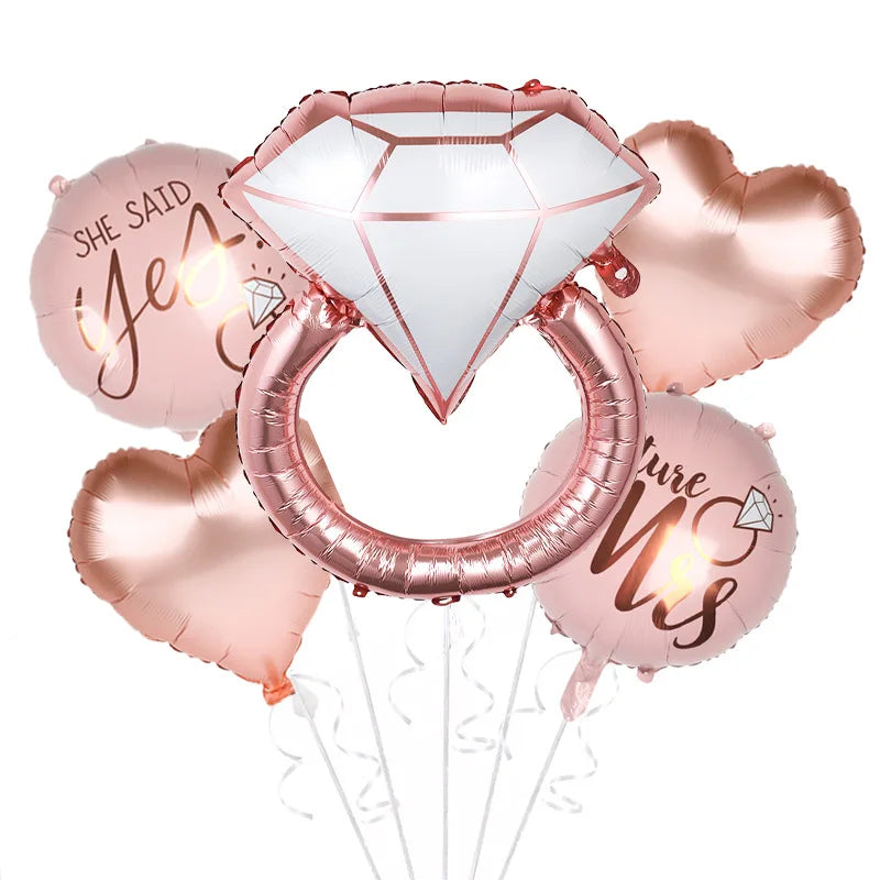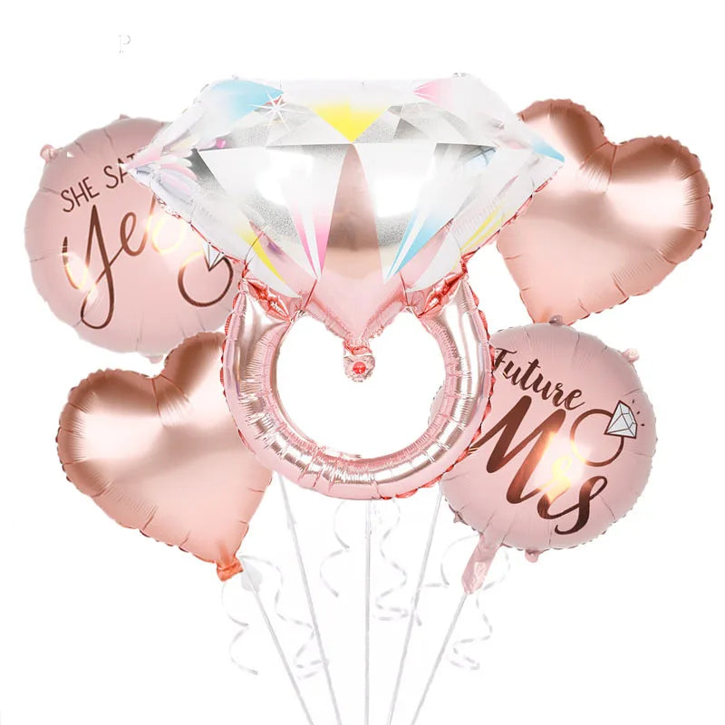 1set Diamond Ring Foil Balloon 22inch Rose Gold Bride to Be Balloon Letter Balloon Bridal Shower Wedding Engagement Decoration