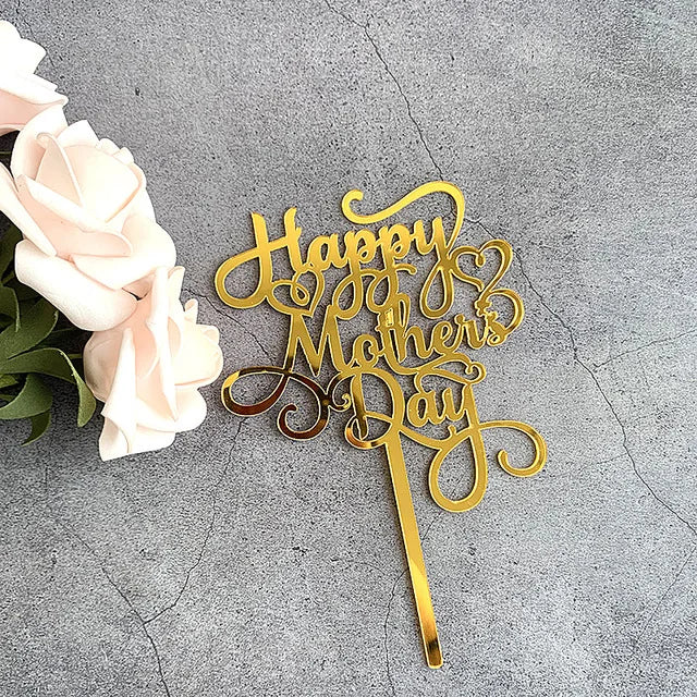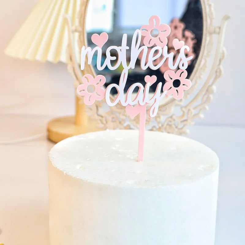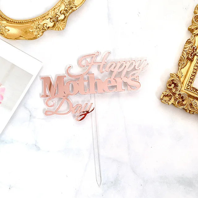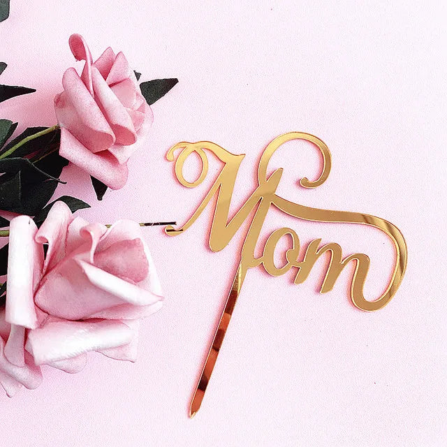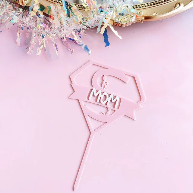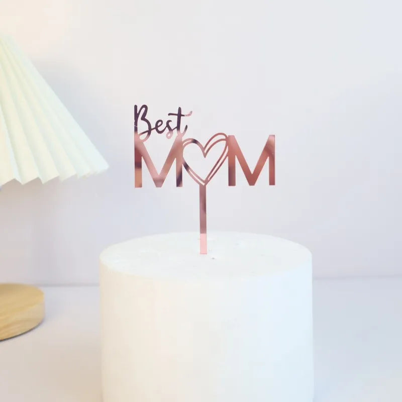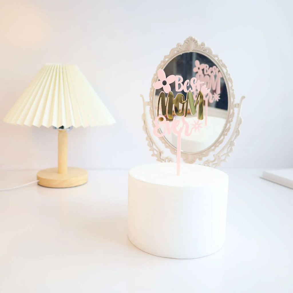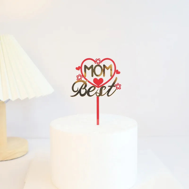 Best Mom Mother's Day Party Cake Topper Pink Red Love You Mum Acrylic Cake Topper for Mommy Birthday Party Cake Decorations Gift