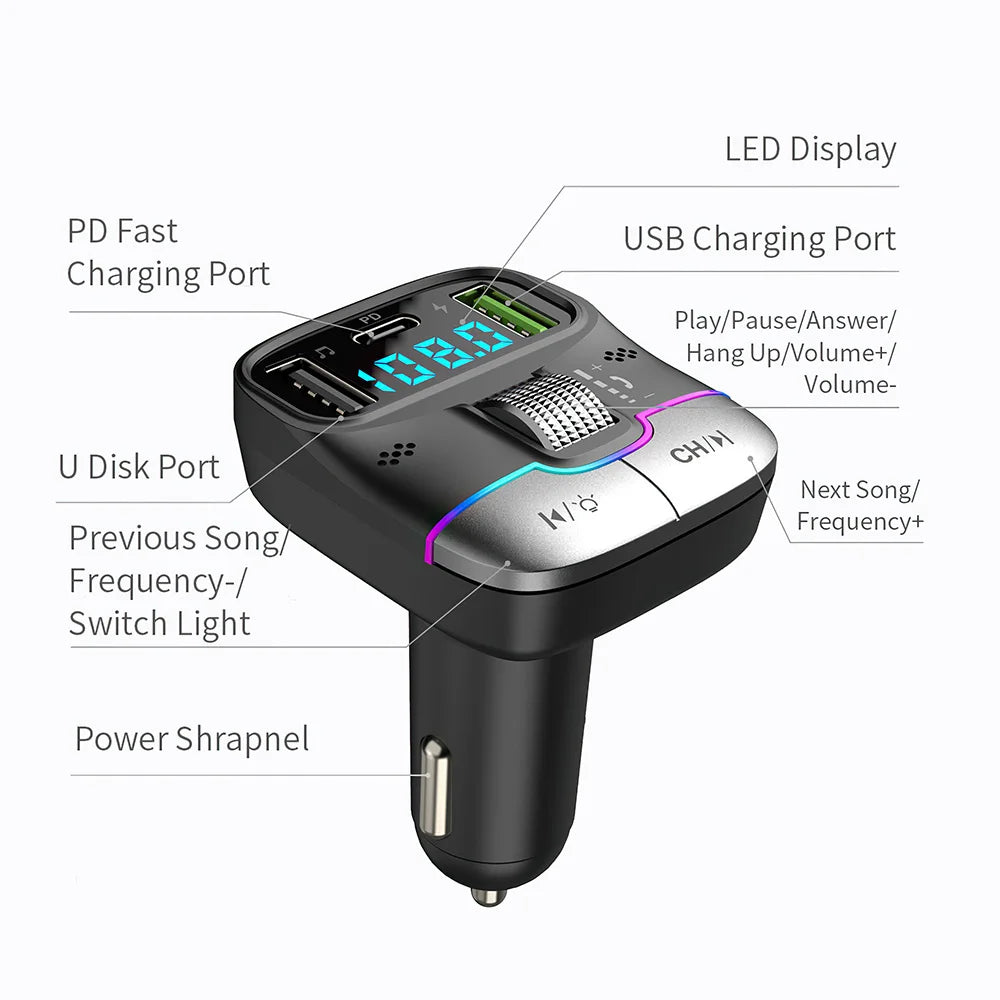 Bluetooth 5.3 Fm Transmitter Wireless Dual USB PD Adapter MP3 Player 3.1A Fast Charger Car Accessories
