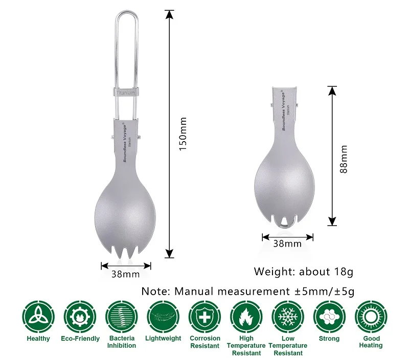 Spork: Size: 150mm*38.6mm; weight: about 17.8 g