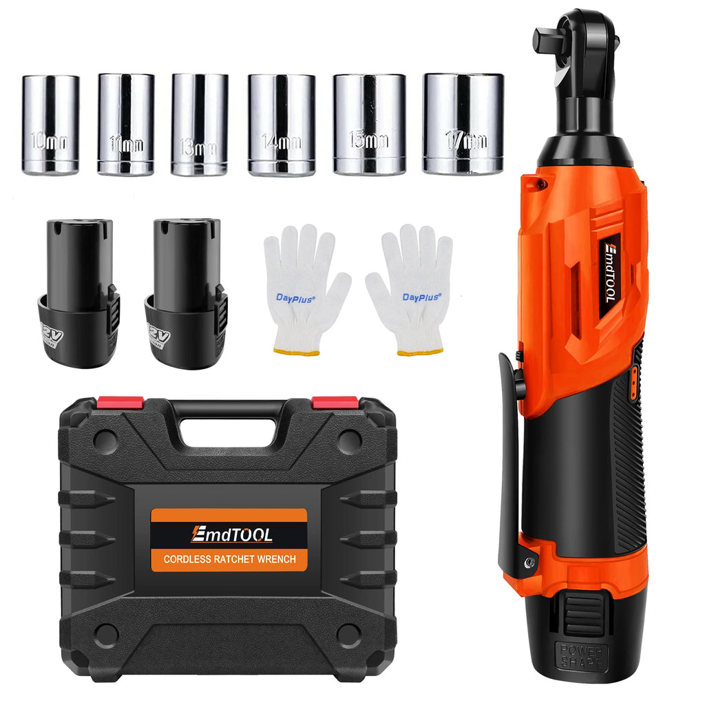 ✅ LED Light & 7 Socekts:The electric ratchet wrench comes with LED light which is convenient for dark environment working. 7 sizes sockets(10mm, 11mm,12mm, 13mm, 14mm, 15mm, 17mm).