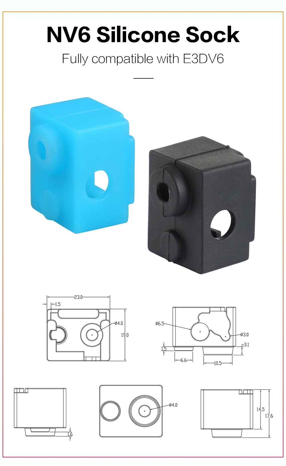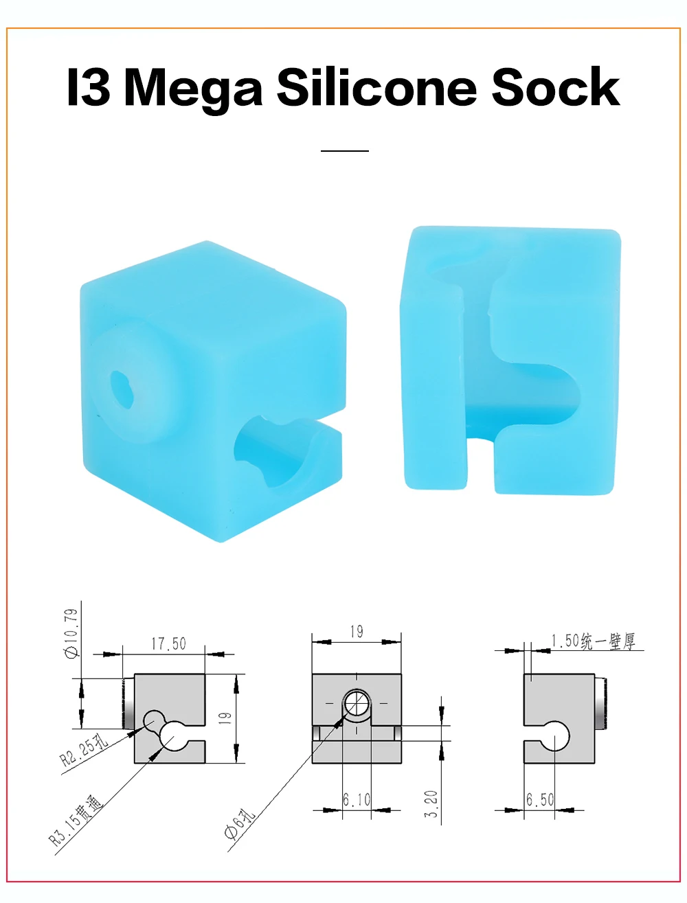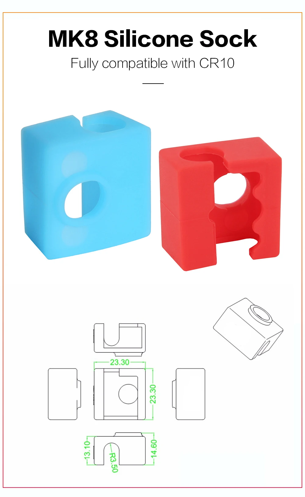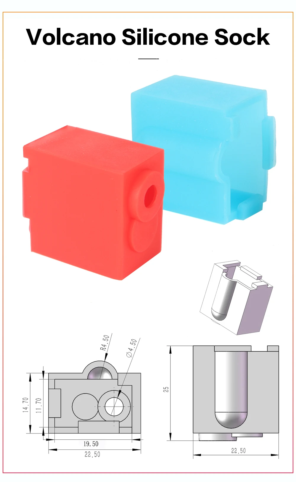3.The silicone sock has good thermal insulation characteristics, can effectively keep the temperature of the heating block stable, especially if the print head is cooled by the model cooling fan, which can effectively keep the temperature of the heating block from being affected by the flowing wind around it, can help to improve the printing quality.