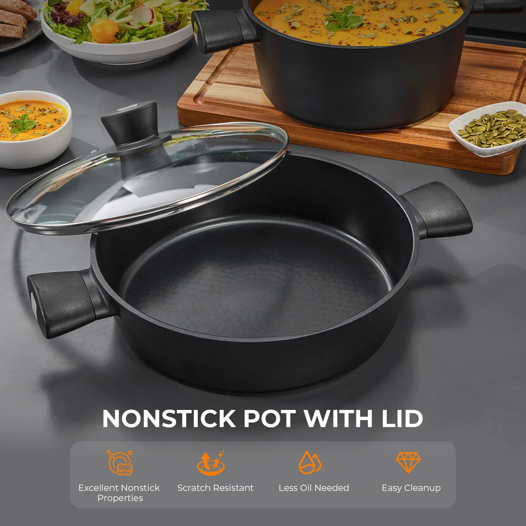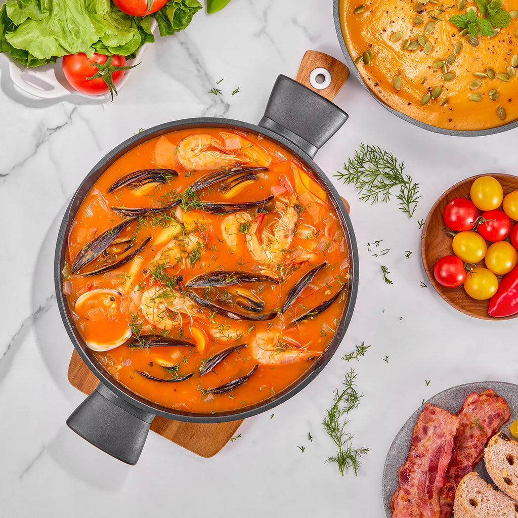 The glass lid allows for more complete cooking, binds nutrients and a delicious taste, making it easier to prepare delicious dishes. From the stove to the table, serve food elegantly