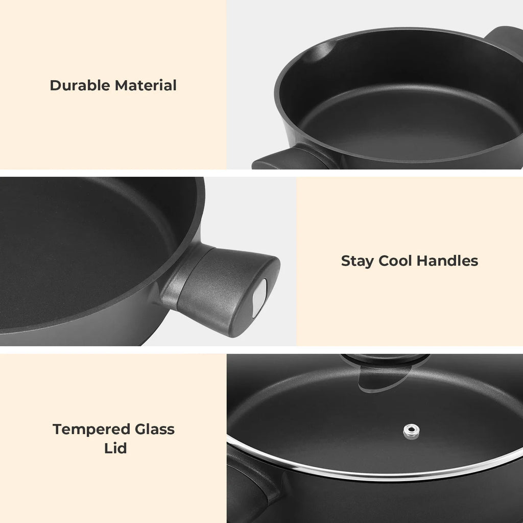 Raised frying pan - The carefully designed raised pan wall makes it easier to sear ingredients, so you no longer have to worry about ingredients flying around everywhere! Ideal for frying, stirring and stewing