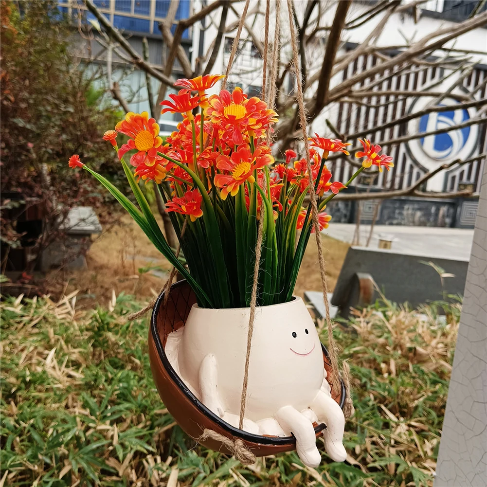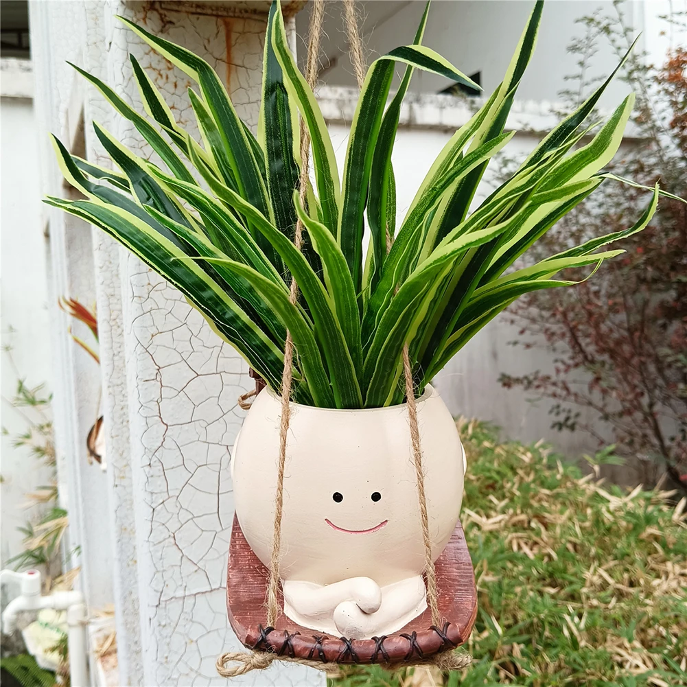 5.Multi-Plant Compatible: Capable of accommodating a variety of plants, from String of Pearls and Hawthorn to succulents, this swing smile face planter can be hung wherever you'd like, bringing life and style to both indoor and outdoor areas.