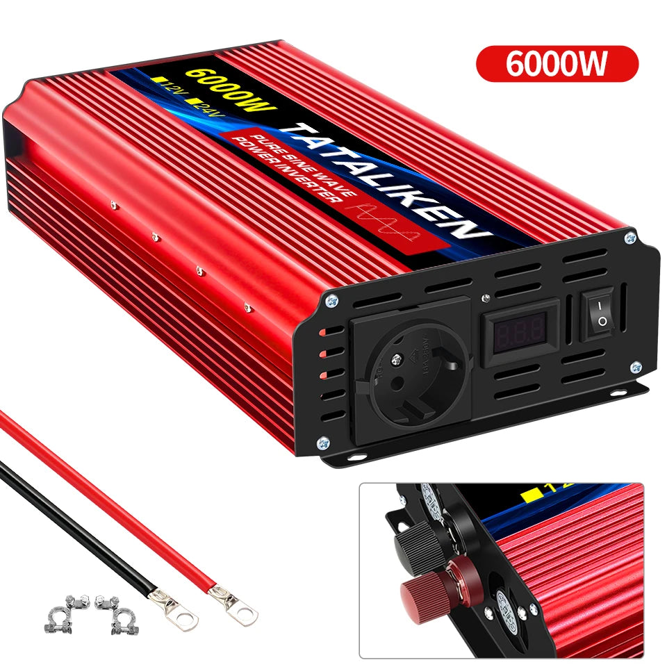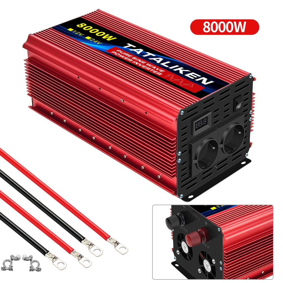 Inverter Pure Sine Wave Power Inverter 10000W DC 12V to AC 220V/230V Converter LED Display and EU Socket