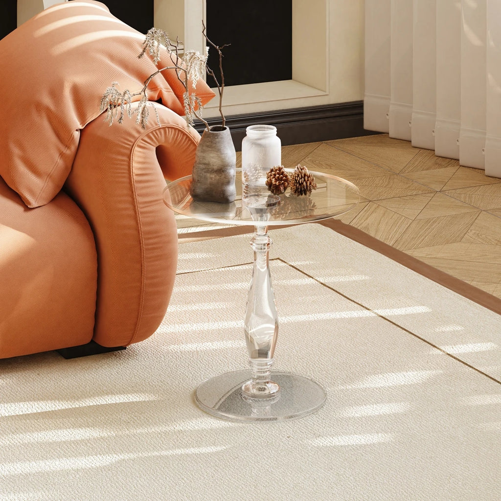 This side table is a visually stunning piece that boasts clear acrylic and embodies elegance and modern simplicity. Its transparent design makes it a versatile addition to apartments, bedrooms, spaces beside a sofa, and cozy corners, blending seamlessly with various interior decor styles. Crafted from stunning clear acrylic, it offers the brilliance of glass combined with the durability of modern design.