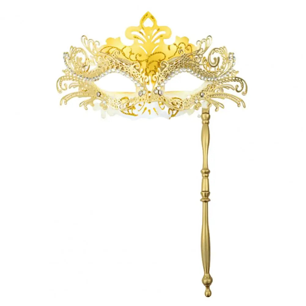 Metal Fancy Elegant Party Masque with Handheld Stick Half Face Venetian Masque with Rhinestones for Women Men Prom Masquerade
