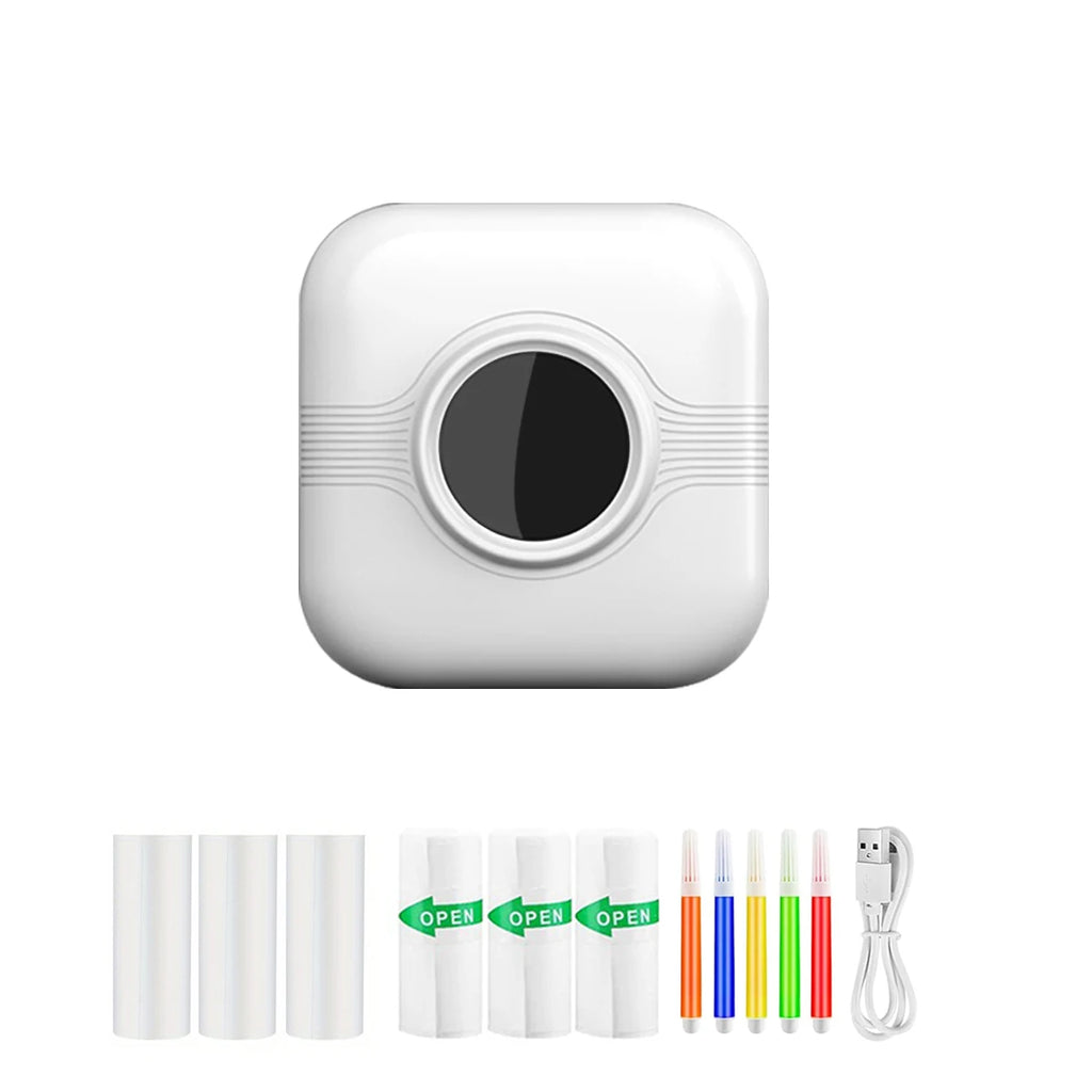 【Thermal Printer with Multiple Uses】Mini printer offers a tremendous amount of capability for your choice. You can print photos and labels, study notes, memos, records, images, lists. Also, there are plenty of themes in the APP, including images, labels, daily plan template and various cartoon patterns, allowing you print whatever you like. 【Wireless Connection】Long pressing the power button for 3 seconds to boot thermal printer. Iphone store or Goole search to download the “Walk Print”, after the Wireless is enabled, you can easily connect the printer in "My Device" to a smartphone or tablet. The pocket printer is compatible with IOS & Android. 【Ideal Gift】This pockect printer support instant pringting for photos, images, labels and more, meeting the needs of home and office organization. It's a great gift for Halloween, Thanksgiving, Christmas and birthdays of your families and friends. Product DescriptionMore FeaturesWith this hand-held printer, now you can print photos, labels, stickers, messages, lists, records, patterns, texts, pictures anytime anywhere. Built-in 1000mAh battery, you can use USB cable to charge by power bank, charger, computer and so on. Wireless connection technology, it can be quickly connected to your smartphone in a few seconds, compatible with iOS and Android systems. Specifications: