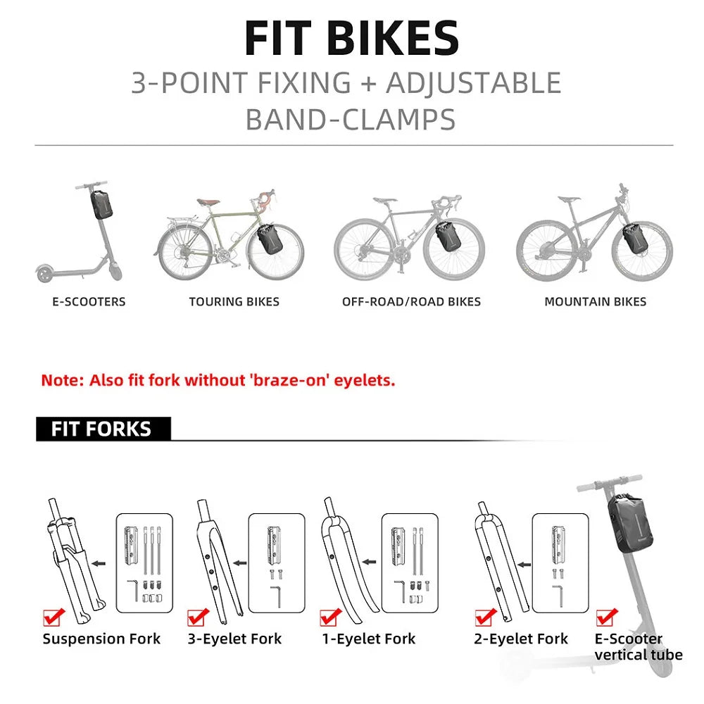 • Additional space expansion: The capacity of this bike front fork bag is 4L, which is convenient for configuring luggage systems such as backpacks and expanding your additional storage space on the journey.