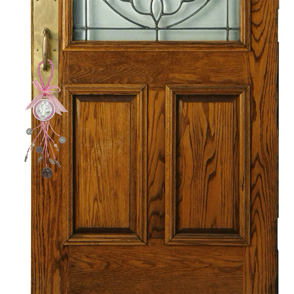 Saint Benedict Medal Protection Blessing Charm Pink Enamel Double Side Catholic San Benito Medalla Cross Charm Handmade Easter Day's Gift Car Hanging Charm for Men Women