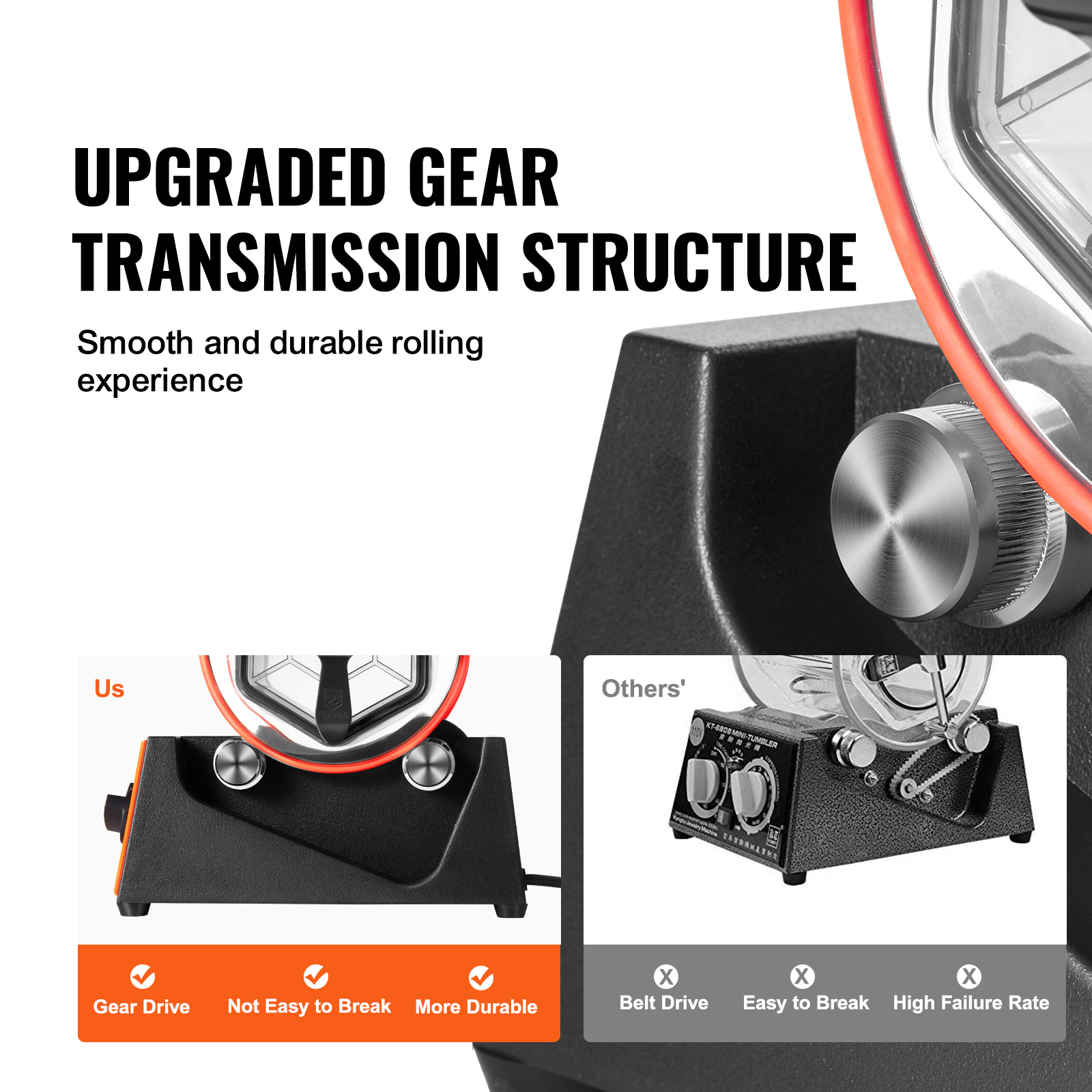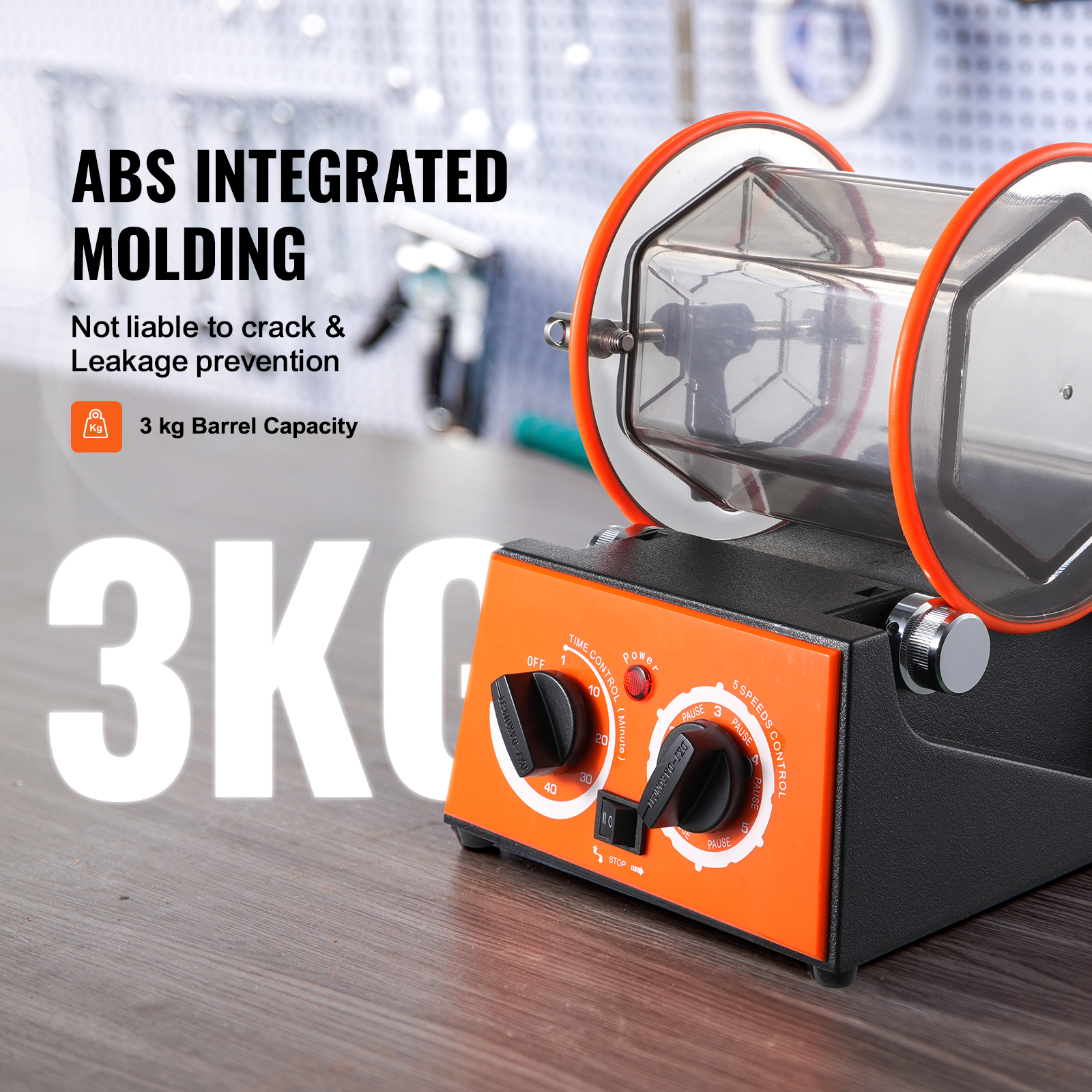 Durable Construction: Made from robust polycarbonate with an advanced molding process, this 3kg rotary tumbler ensures durability and smooth, reliable performance with its improved gear system.