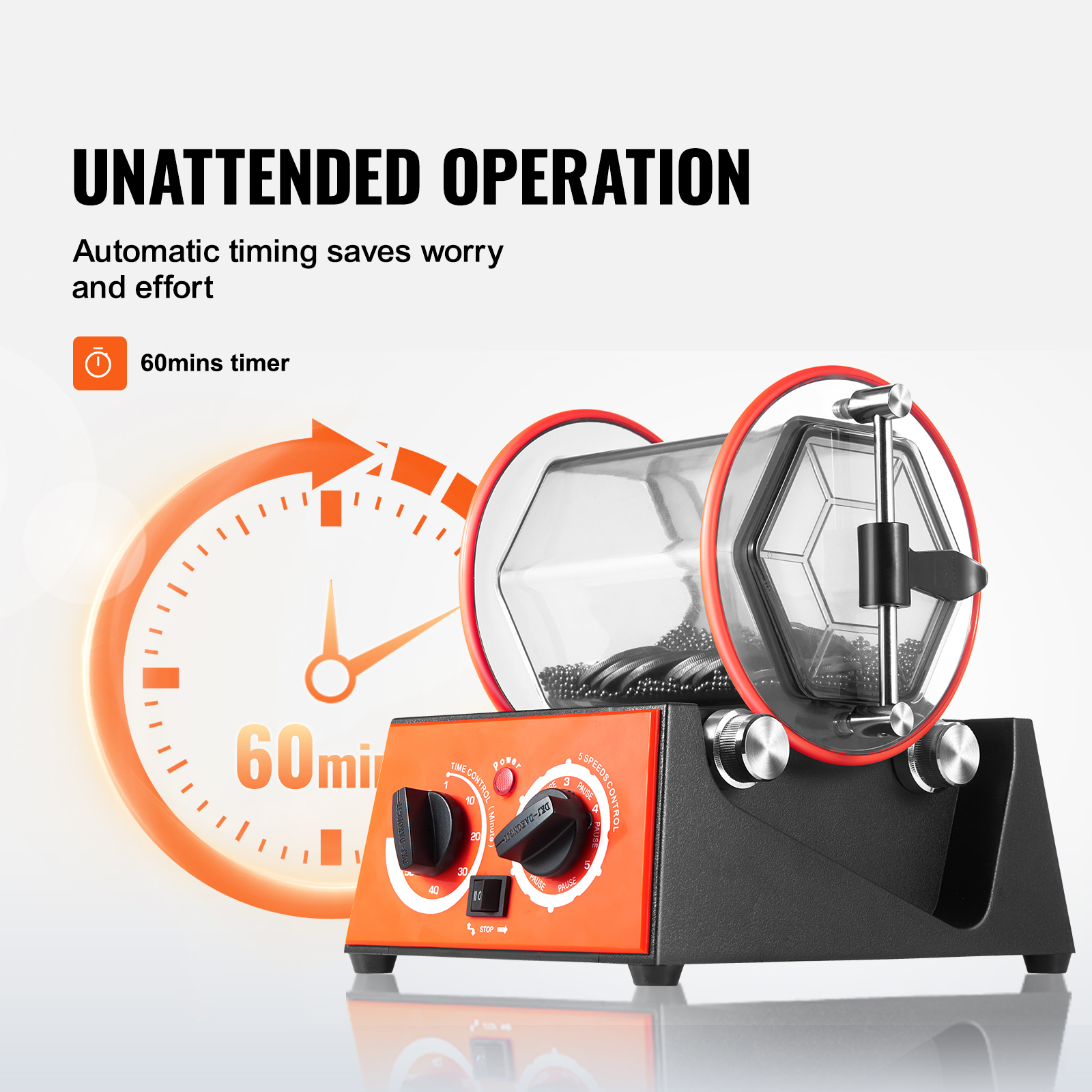 Enhanced Efficiency: Boost your polishing speed up to 10 times using centrifugal force with iron or steel balls, delivering precise and shiny results for your items.
