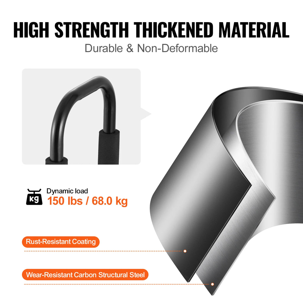 Quick-Fold Design for Easy Storage:This kayak roof rack features a quick-folding system that adjusts from 0° to 180°, allowing you to save space when not in use. The folding design reduces roof height, ensuring better garage access and providing a sleek look. It also accommodates kayaks of various widths and can be used to transport skis, surfboards, small canoes, and luggage. Heavy-Duty Construction for Large Loads:Built with high-strength alloy steel and premium plastic, these racks are designed to support up to 150 lbs (68 kg), making them ideal for transporting large kayaks without fear of deformation or damage. The rust-resistant coating ensures durability even in harsh weather conditions. Universal Fit for Easy Installation:This roof rack is compatible with most vehicles, easily mounting to round bars (Φ1.0"" - 1.6"") or flat bars (0.6"" - 1.6"") thick, and crossbars with a width of less than 3.9"" (100 mm). The straightforward installation process requires no tools—simply tighten the screws at the base to secure it to your car’s roof bars. Convenient Multi-Kayak Transport:Designed with four durable carriers, this roof rack can easily transport one or two kayaks. The flexible space allows for adjustable loading, making it perfect for family vacations or group trips. Transport your kayaks with ease while optimizing space for other gear or equipment. Scratch and Friction Protection:Equipped with wear-resistant plastic brackets and thick, soft cushioning on each bar, this rack effectively prevents damage from rubbing and impacts. The cushioned design also minimizes friction and vibrations, providing added protection for both your kayak and vehicle roof.