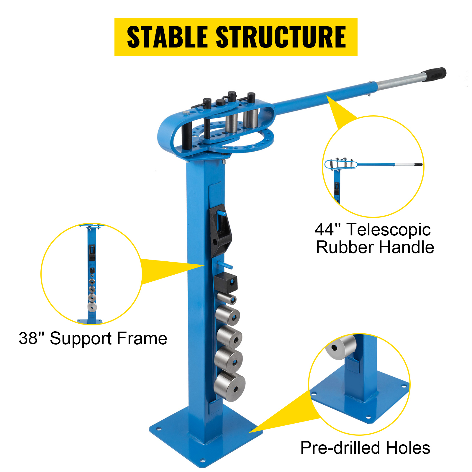Floor-Type Design: The bender's telescoping handle can bend flat or square bar stock up to 5/8 inches thick and 1-15/16 inches wide. It simplifies your work.
