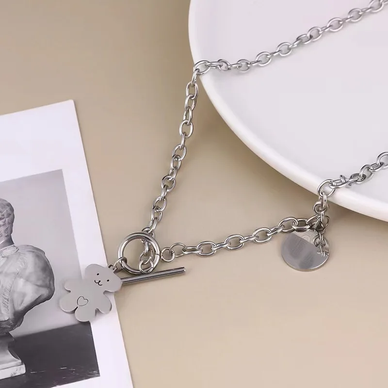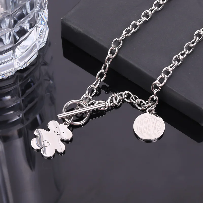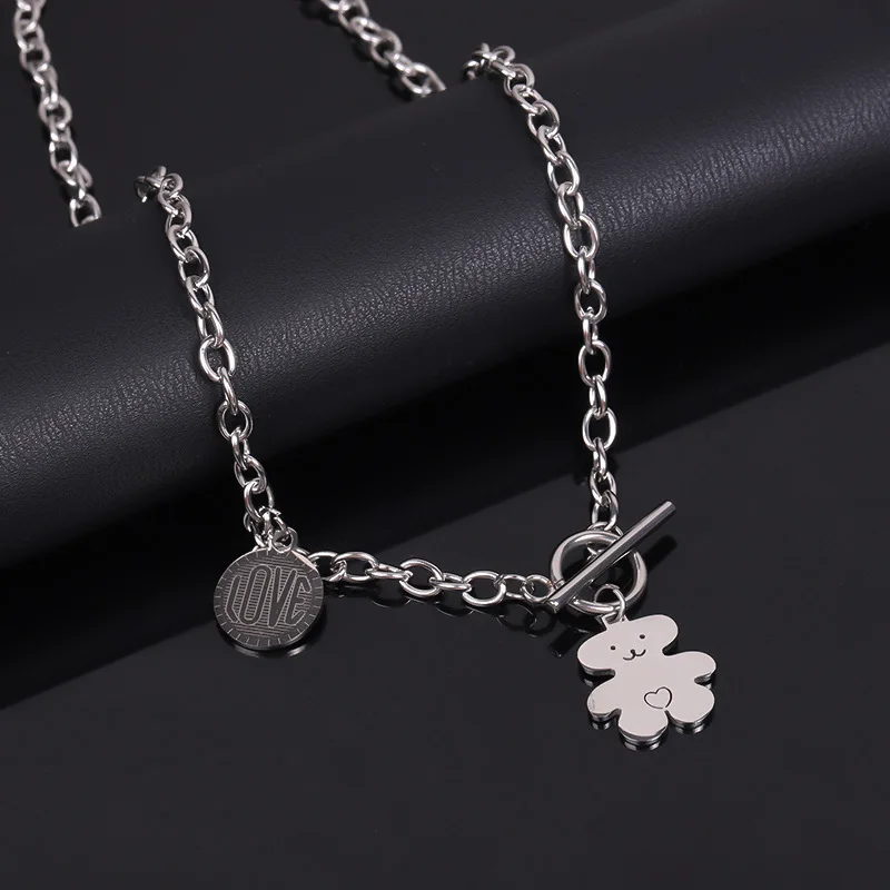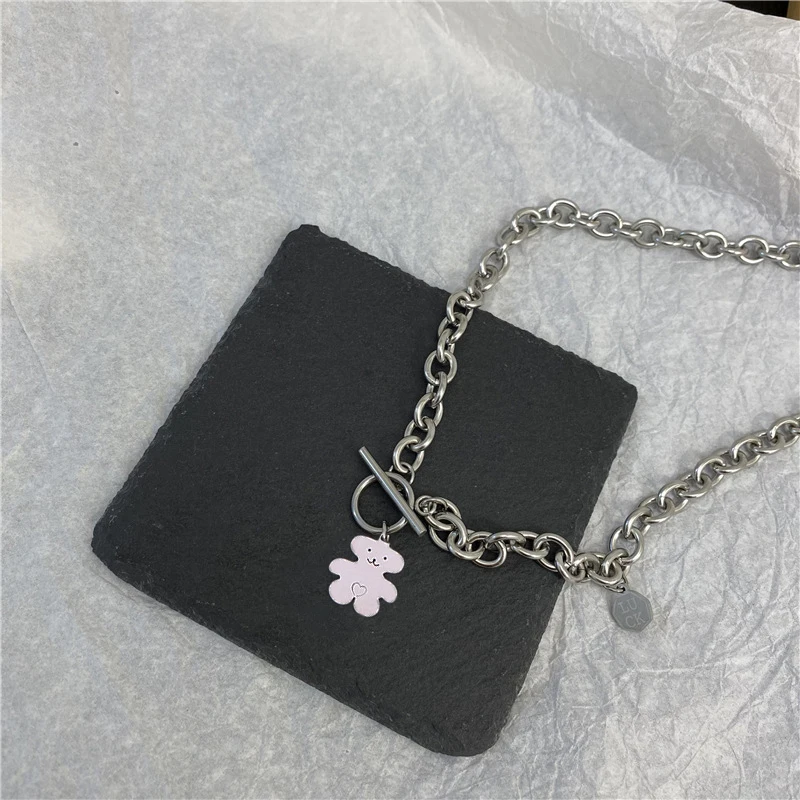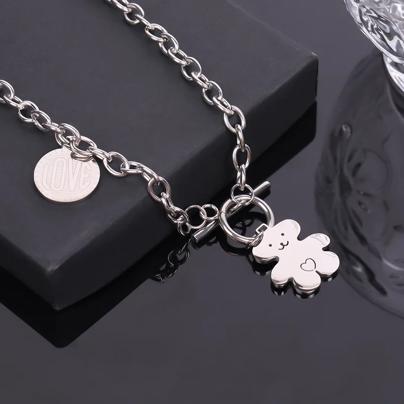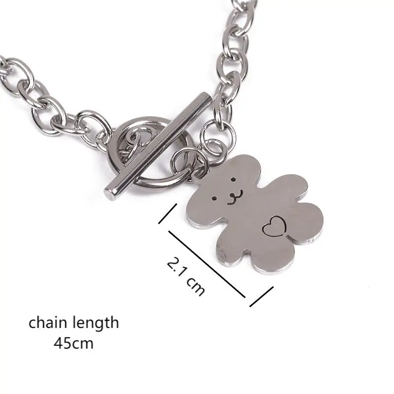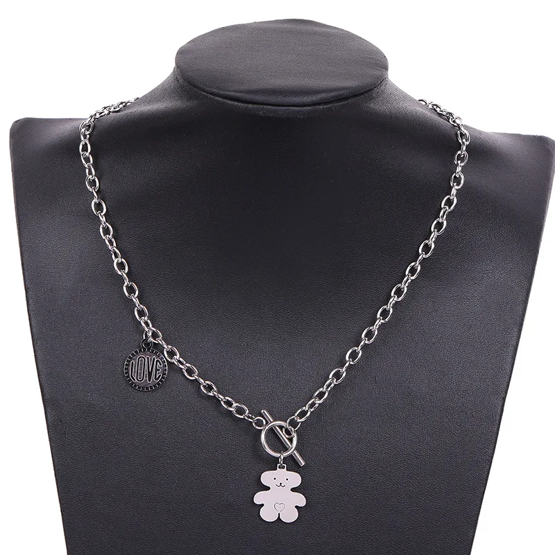 Trendy hip-hop love teddy bear pendant necklace, personalized, simple and versatile, niche design, collarbone chain