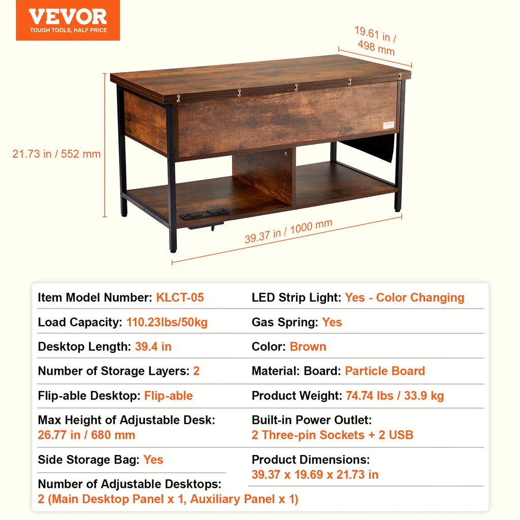 Adjustable Height:The adjustable coffee table has an extendable top that can be raised, offering a floating raised work surface with two modes - normal and raised positions. It's designed to be used flexibly, perfect for working, dining, or storing items in the living room.